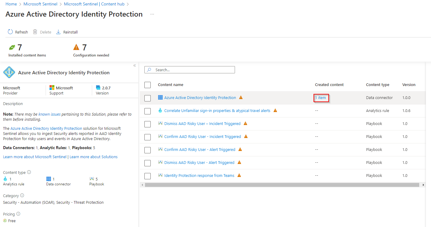 Manage the solution, as you can see there is multiple item in each solution i recommand you to enable the connector, analytics rules and workbook. If you enable automation it can lead to additionnal fee so be carefull.